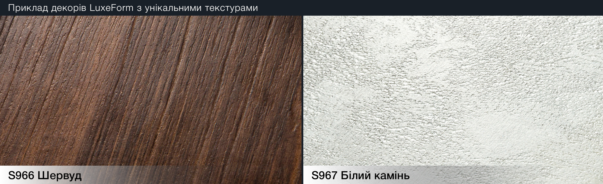 Зберігаючи легкість в догляді та практичність виробів LuxeForm, ви отримуєте неймовірні відчуття та задоволення від використання стільниць, стінових панелей та фасадів.