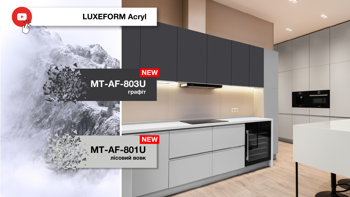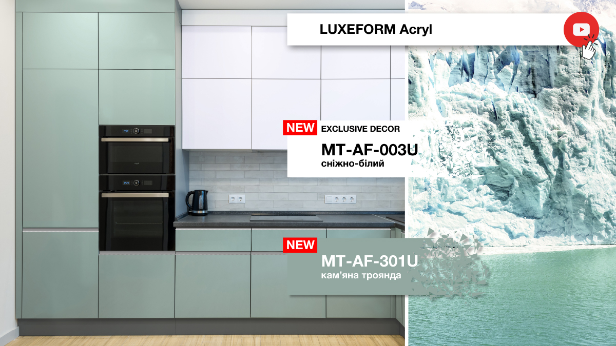 Колекція фасадів та декоративних панелей LuxeForm Acryl поповнилася 6 унікальними декорами: 5 матовими та 1 глянцевим.