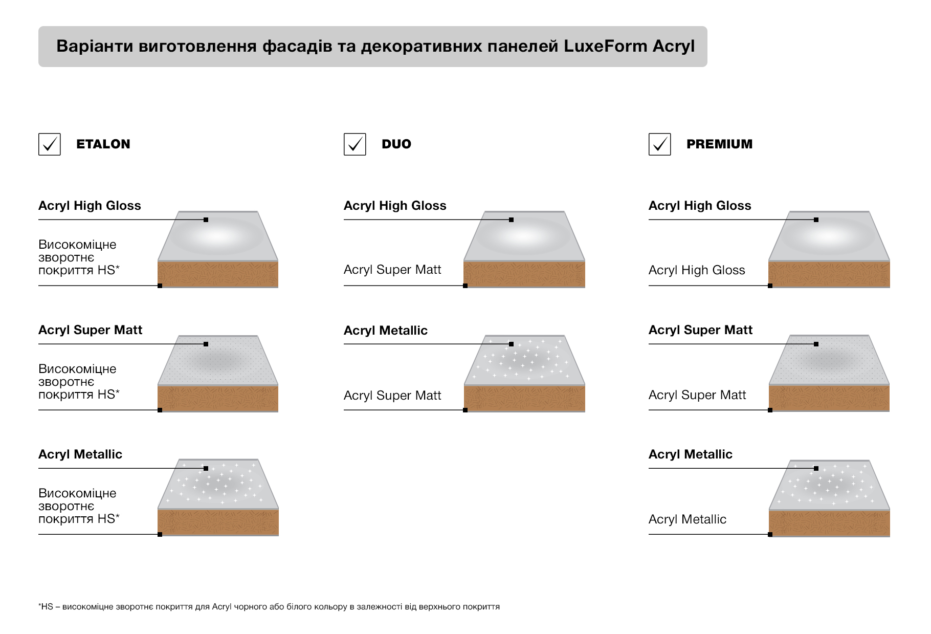 Типи поверхні LuxeForm Acryl: