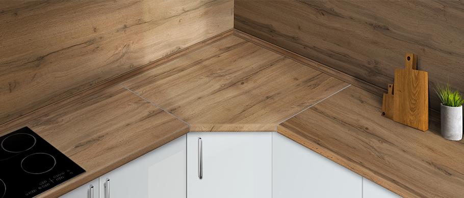 Як і стільниці LuxeForm™, кутові елементи виготовляються за технологією постформінг на основі звичайної або вологостійкої ДСП.